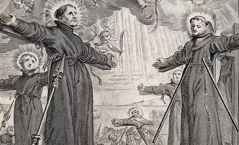 Martyrdom of St. Paul Miki and his companions: Engraving by Dutch Artist: Abraham van Diepenbeeck: 1596